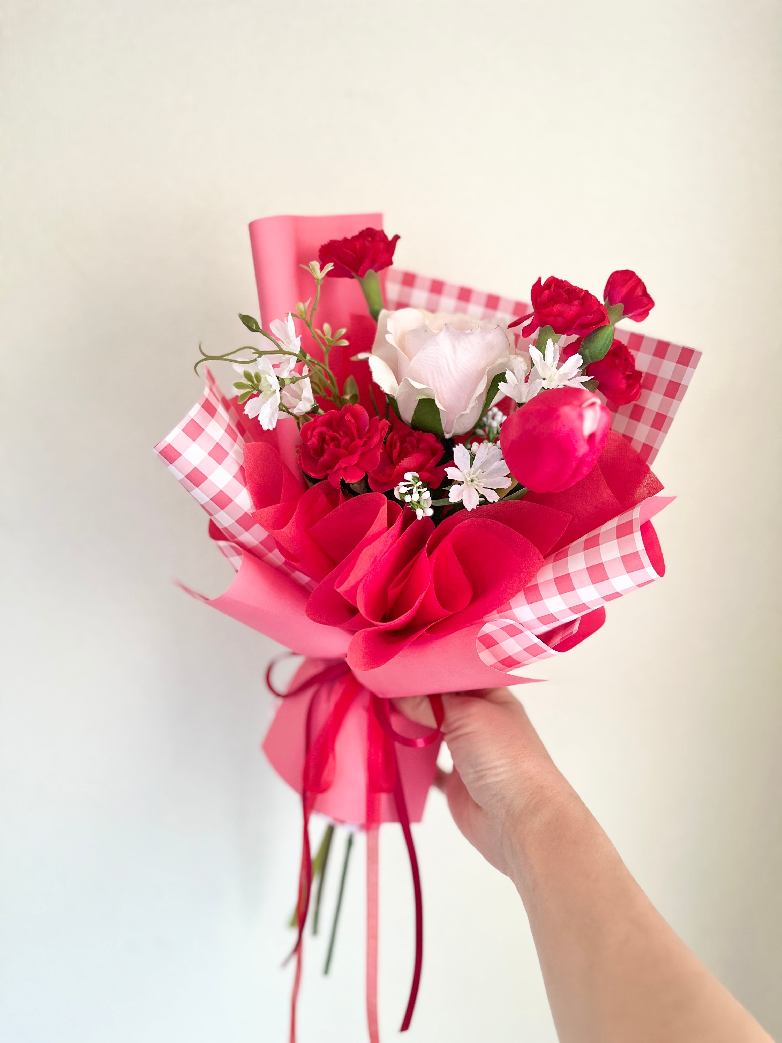 キットの花材にご自身でお好きなアーティフィシャルフラワーを追加していただいてもかまいません。